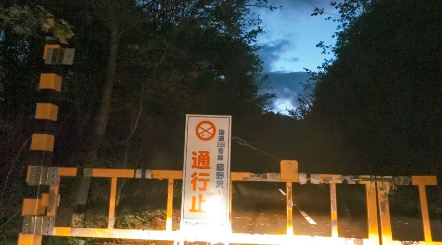なぜか「野平」から「脇野沢」へ向かう国道338号が通行止め。