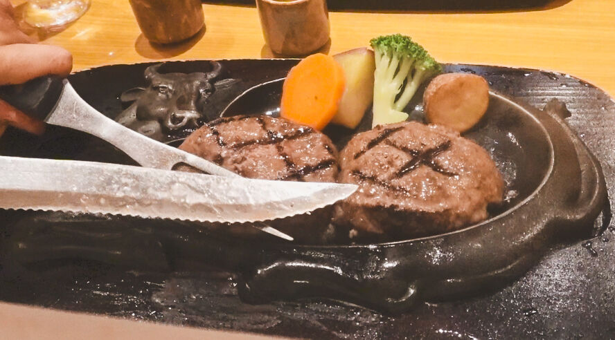 リーズナブルな価格で炭火焼きハンバーグが味わえる。