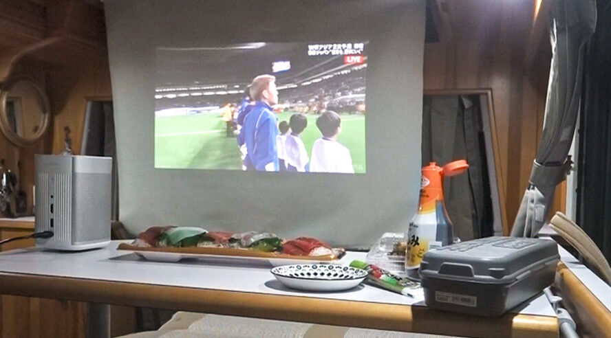 道の駅に到着後はサッカーを観戦しながら晩酌。