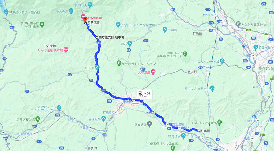 道の駅から四万温泉へは27km40分ほどの道のり。