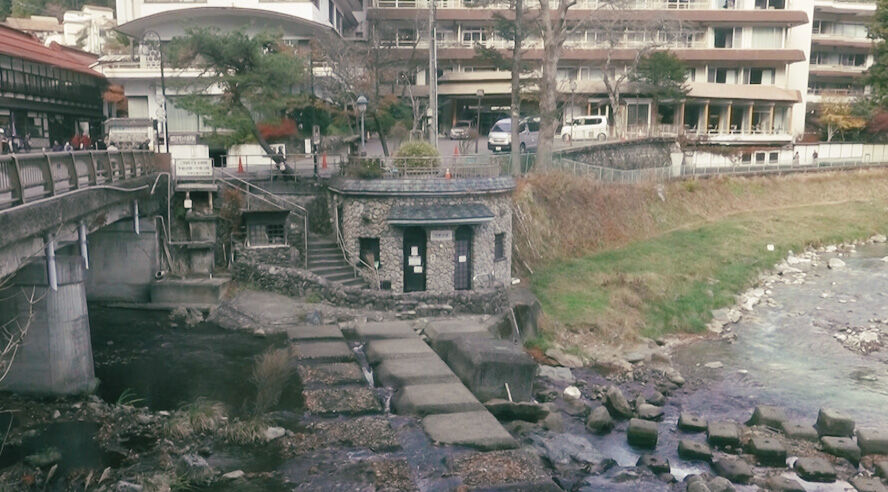四万川と新湯川の合流地点にある共同浴場「河原の湯」(利用時間9:00~14:00)
