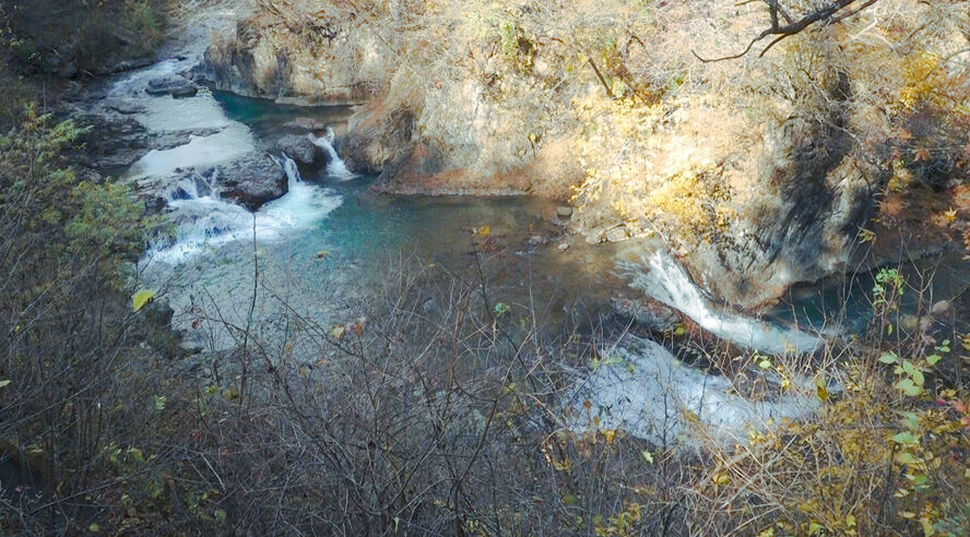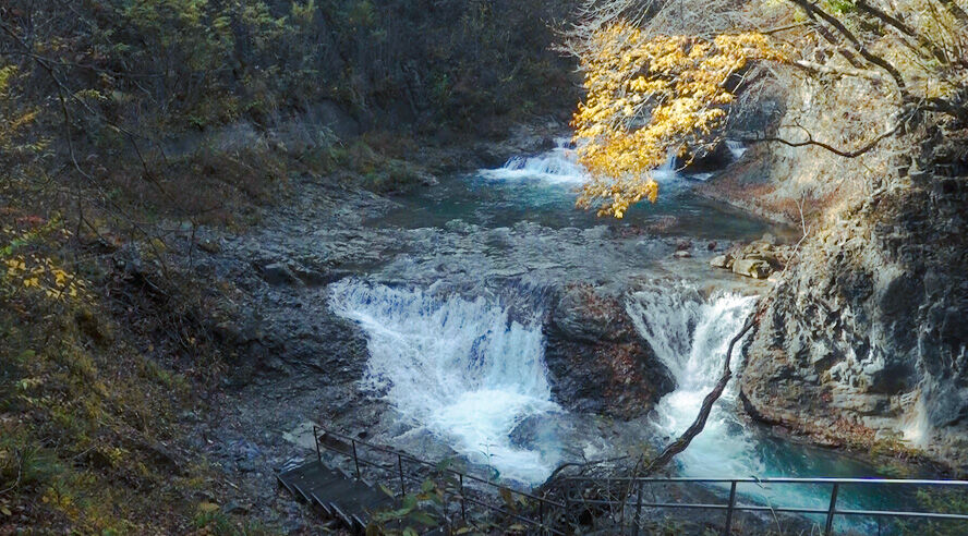 ※2023年11月現在は上流の水力発電の工事の影響により増水しており甌穴は見れない。