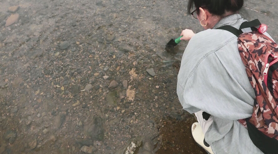 砂鉄が堆積しているので砂金が混じっていないか確認。