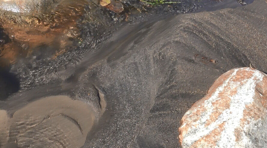 鉄くずが落ちていたので周辺の砂を採取してパンニング。