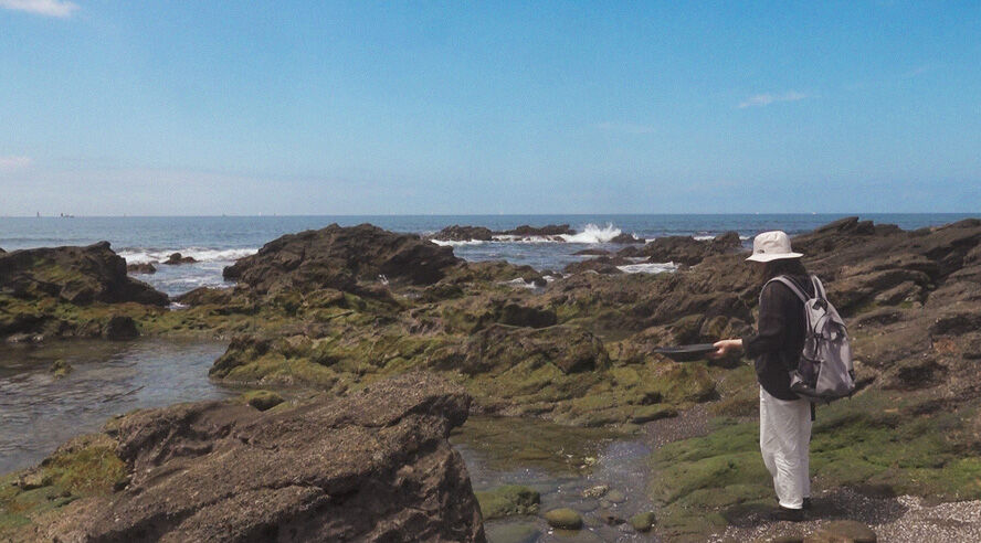 引き潮によって普段は海面の下の岩礁が姿を現す。