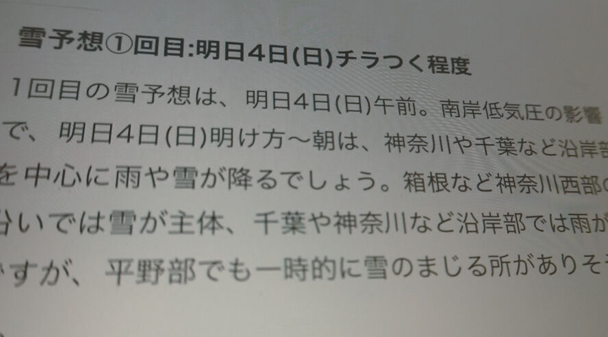 箱根や神奈川西部では雪になるかもみたいなニュースが流れている…。