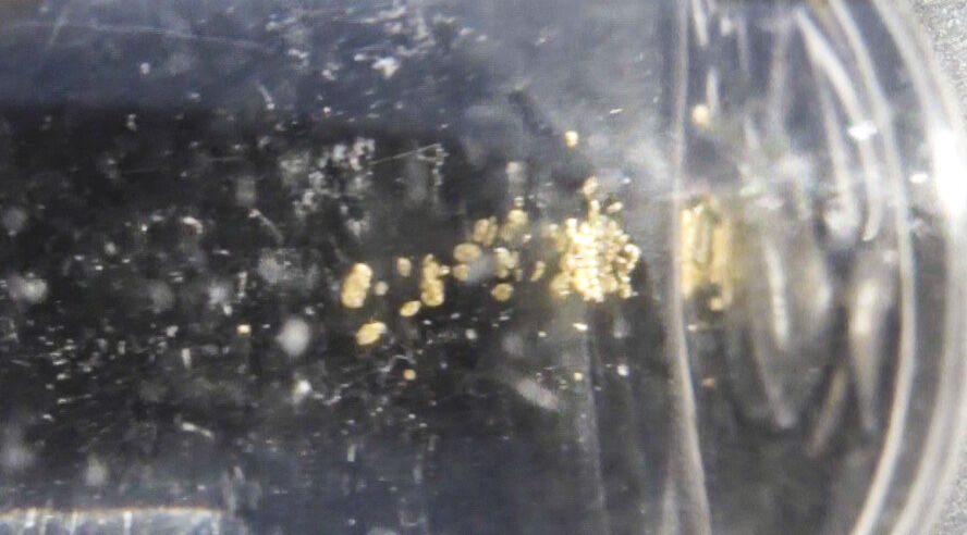 底に溜まった土砂をパンニングしてみたが砂金には出会えず。