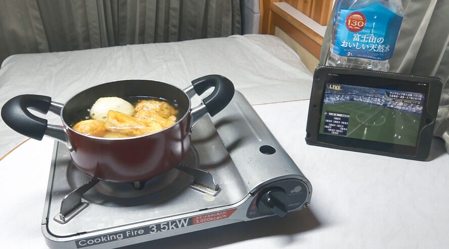 鈴廣で買ったおでんを食べながらアジアカップ「日本対イラン」を観戦。