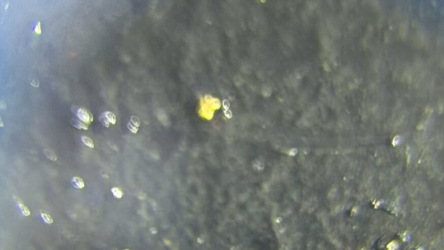 小さ過ぎて写真に撮るのも困難だけど、形状や輝きから間違いなく砂金だ。