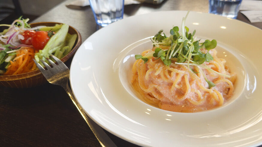 人気No.1のリコッタチーズと明太子のパスタ(税込1500円)をオーダー。